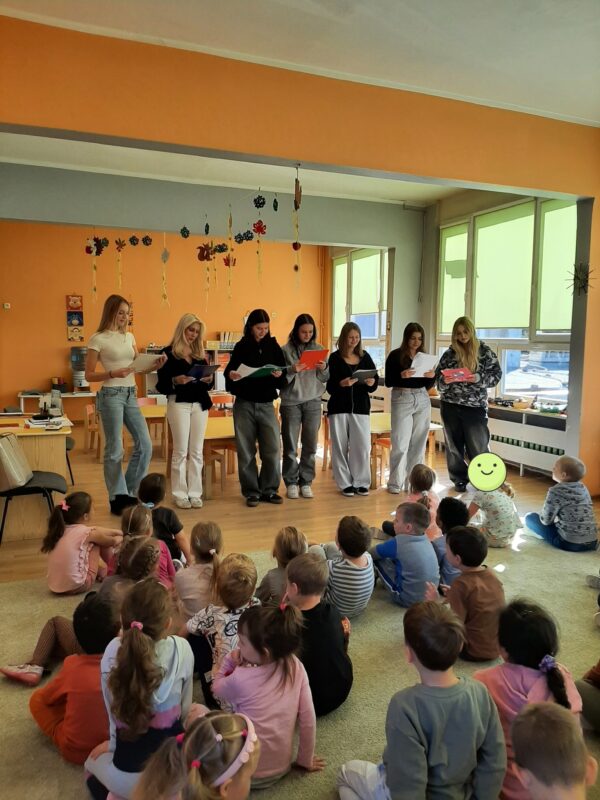 Następnie licealistki zaprezentowały najmłodszym najbardziej znane utwory Jana Brzechwy i Juliana Tuwima, wprowadzając ich w magiczny świat literatury. Po występie uczennice wręczyły przedszkolakom zakładki do książek wykonane przez uczniów naszego liceum.