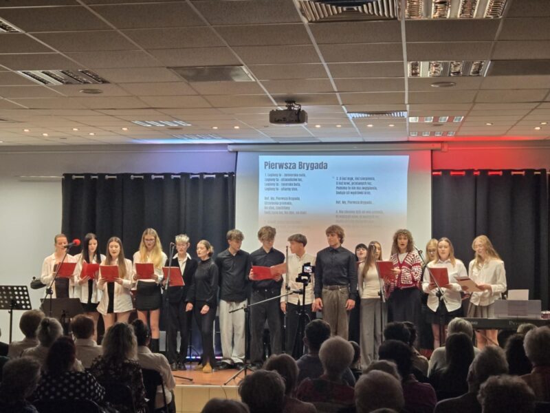 Najpierw odbyły się uroczyste apele przygotowane przez klasę 4B2, podczas których nastąpiło wspomnienie tego ważnego dla Polaków wydarzenia, a następnie klasa 3A2 wraz ze wsparciem klasy 4F wystąpiła w Osiedlowy Dom Kultury “Bajka” , uczestnicząc w wydarzeniu dla lokalnej społeczności i wykonując patriotyczne utwory.