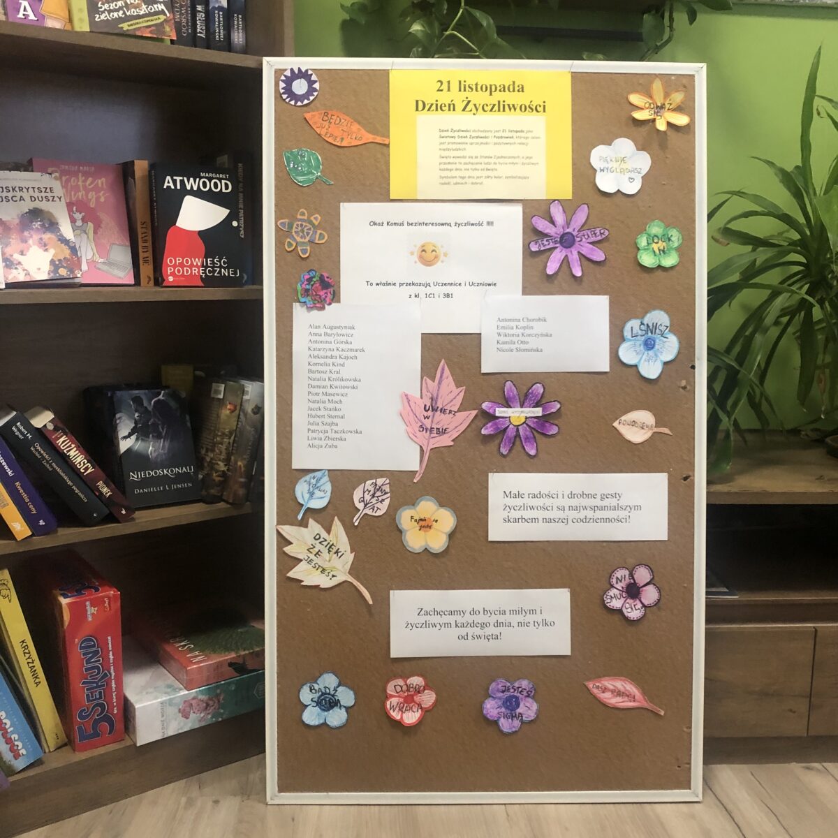Jest to okazja, aby przekazać sobie pozytywne emocje, a także promować wartości takie jak empatia, szacunek. Z tej okazji biblioteka przygotowała gazetkę, na której Uczennice i Uczniowie z kl. !c1, 3B1 przesyłają dobre emocje całej Społeczności Szkolnej. Warto uwierzyć, że w każdym z nas drzemią niewyczerpane pokłady dobra.