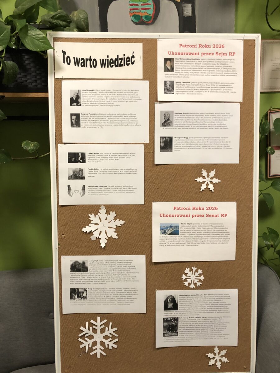 Biblioteka zaprasza do zapoznania się z gazetką w holu szkoły poświęconą Patronom Roku 2026