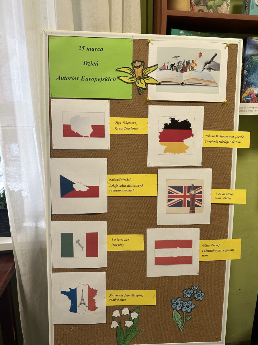nie tylko polskich autorów. W holu szkoły można obejrzeć gazetkę, która poleca autorów i ich książki.