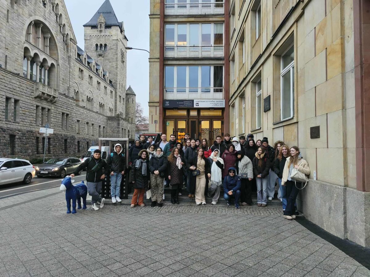 ,,W ubiegłym tygodniu gościliśmy w naszej szkole uczniów z Włoch. Wspólnie z naszymi uczniami brali udział w lekcjach języka angielskiego, integrowali się, wymieniali doświadczeniami i poznawali szkolną codzienność. Nie zabrakło również atrakcji turystycznych – odwiedziliśmy Stary Rynek, Bramę Poznania, Centrum Szyfrów Enigma, a także wybraliśmy się do Warszawy, gdzie zobaczyliśmy m.in. Zamek Królewski, Pałac Kultury i Nauki, Centrum Nauki Kopernik, Grób Nieznanego Żołnierza oraz Pałac Prezydencki. Był też czas na spacer po jarmarku.